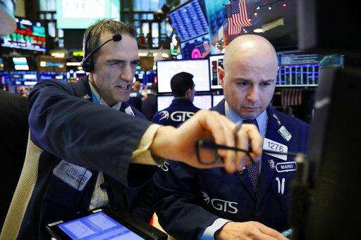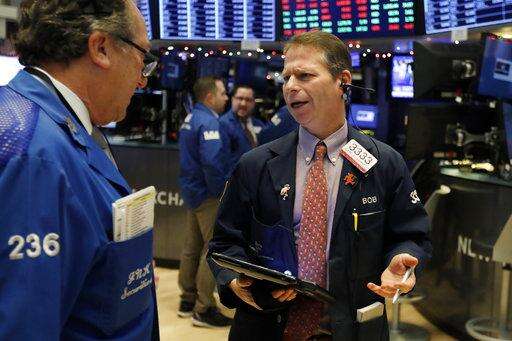 Trader Gregory Rowe, left, and specialist Mario Picone work on the floor of the New York Stock Exchange, Thursday, Dec. 27, 2018. Wall Street's wild Christmas week goes on, with the Dow Jones Industrial Average slumping 300 points at the open Thursday, a day after notching its biggest-ever point gain. (AP Photo/Richard Drew)