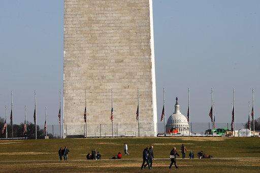 People walk near the Washington Monument, with the U.S. Capitol in the background, Wednesday, Dec. 26, 2018, as the partial government shutdown continues in Washington. A shutdown affecting parts of the federal government appeared no closer to resolution Wednesday, with President Donald Trump and congressional Democrats locked in a hardening standoff over border wall funding that threatens to carry over into January. (AP Photo/Jacquelyn Martin) The Associated Press