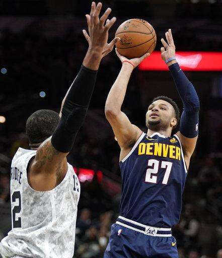 DeMar DeRozan had 30 points, LaMarcus Aldridge scored 27 and San Antonio defeated the Denver Nuggets 111-103 on Wednesday night.