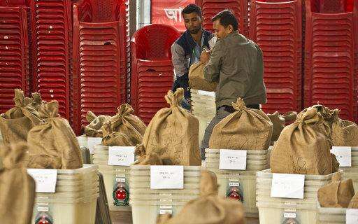 Bangladeshi election officials carry voting material at a distributing center on the eve of the general elections in Dhaka, Bangladesh, Saturday, Dec. 29, 2018. Bangladesh Prime Minister Sheikh Hasina is poised to win a record fourth term in Sunday's elections, drumming up support by promising a development bonanza as her critics question if the South Asian nation's tremendous economic success has come at the expense of its already fragile democracy. (AP Photo/Anupam Nath) The Associated Press