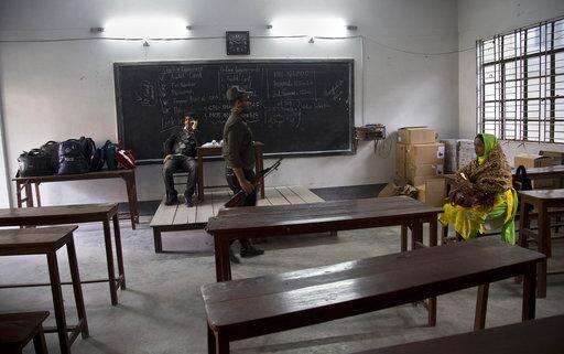 A Bangladeshi security personal stands guard as polling officials take rest after reaching a polling station on the eve of the general elections in Dhaka, Bangladesh, Saturday, Dec. 29, 2018. As Bangladeshis get set for Sunday's parliamentary elections, there are fears that violence and intimidation could keep many away from the polls, including two opposition candidates who said police had barricaded them inside their homes. (AP Photo/Anupam Nath) The Associated Press