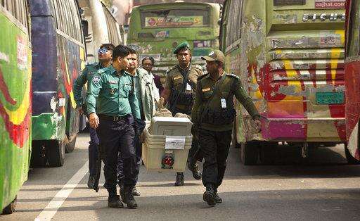 Bangladeshi security personnel carry voting material before being transported to different polling stations on the eve of the general elections in Dhaka, Bangladesh, Saturday, Dec. 29, 2018. Bangladesh Prime Minister Sheikh Hasina is poised to win a record fourth term in Sunday's elections, drumming up support by promising a development bonanza as her critics question if the South Asian nation's tremendous economic success has come at the expense of its already fragile democracy. (AP Photo/Anupam Nath) The Associated Press