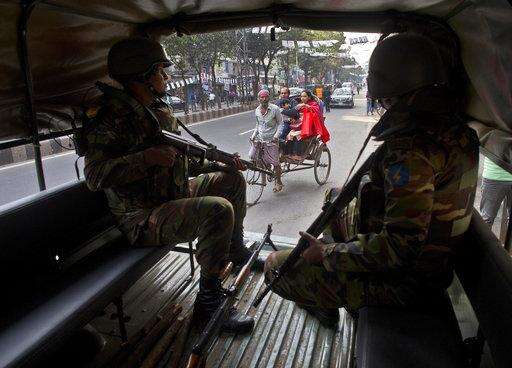 Bangladeshi army soldiers sit inside a vehicle as they patrol the streets on the eve of the general elections in Dhaka, Bangladesh, Saturday, Dec. 29, 2018. Bangladesh Prime Minister Sheikh Hasina is poised to win a record fourth term in Sunday's elections, drumming up support by promising a development bonanza as her critics question if the South Asian nation's tremendous economic success has come at the expense of its already fragile democracy. (AP Photo/Anupam Nath) The Associated Press