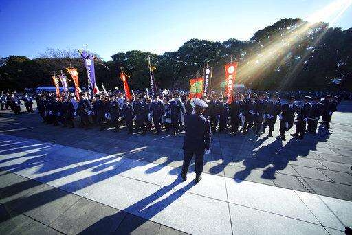 Well-wishers walk toward the venue for Japan's Emperor Akihito's public appearance with his family members at Imperial Palace in Tokyo Wednesday, Jan. 2, 2019. (AP Photo/Eugene Hoshiko)