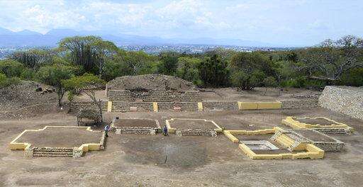 In this 2018 photo provided by Mexico's National Institute of Anthropology and History, INAH, investigators work at the Ndachjian–Tehuacan archaeological site in Tehuacan, Puebla state, Mexico, where archaeologist have identified the first known temple to the Flayed Lord, a pre-Hispanic fertility god depicted as a skinned human corpse. Although depictions of the god, Xipe Totec, had been found before in other cultures, a whole temple had never been discovered. (Meliton Tapia Davila/INAH via AP) The Associated Press