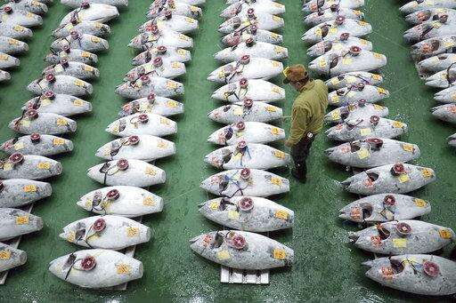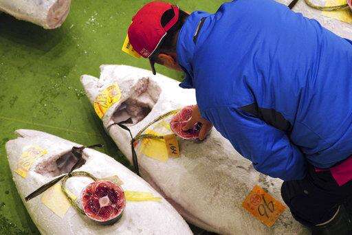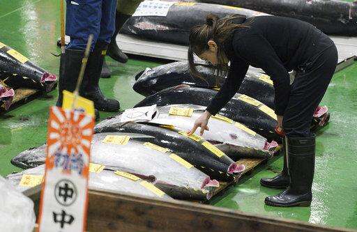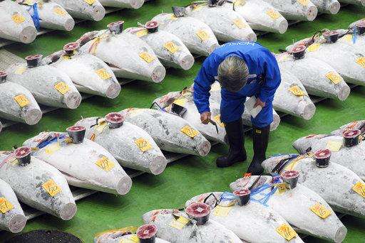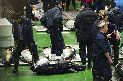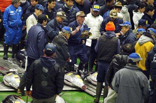 TOKYO (AP) - A 612-pound (278-kilogram) bluefin tuna sold for a record 333.6 million yen ($3 million) at the first auction of 2019, after Tokyo's famed Tsukiji market was moved to a new site on the city's waterfront.