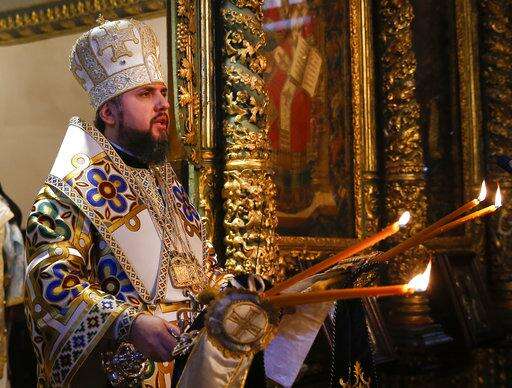 Metropolitan Epiphanius, the head of the independent Ukrainian Orthodox Church conducts a religion service at the Patriarchal Church of St. George in Istanbul, Sunday, Jan. 6, 2019. An independent Ukrainian Orthodox church has been created at a signing ceremony in Turkey, formalizing a split with the Russian church it had been tied to since 1686. (AP Photo/Lefteris Pitarakis) The Associated Press