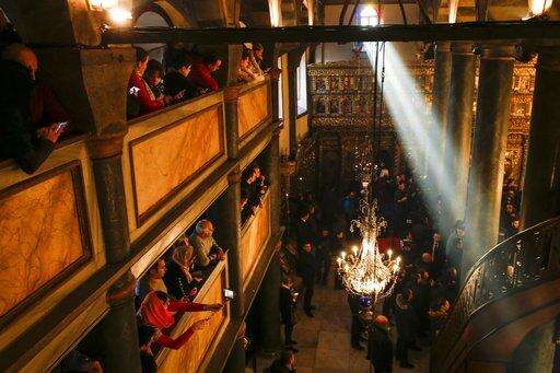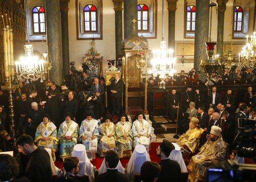Visitors wait for a religion service at the Patriarchal Church of St. George in Istanbul, Sunday, Jan. 6, 2019. An independent Ukrainian Orthodox church has been created at a signing ceremony in Turkey, formalizing a split with the Russian church it had been tied to since 1686. (AP Photo/Emrah Gurel) The Associated Press