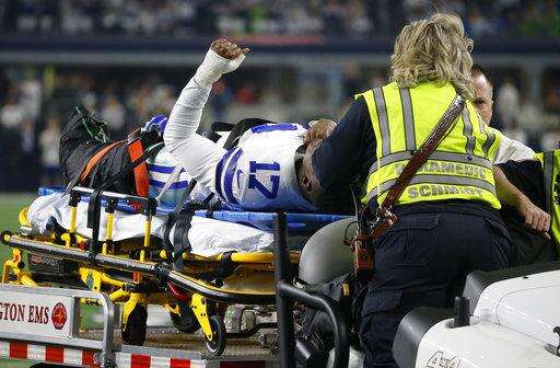 The 27-year-old Hurns writhed in pain on the turf as medical personnel rushed out to immobilize his leg. He was taken off the field on a cart after being placed on a stretcher, tears streaming down his face.