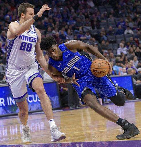 Orlando Magic forward Jonathan Isaac (1) drives to the basket past Sacramento Kings forward Nemanja Bjelica (88) during the first quarter of an NBA basketball game in Sacramento, Calif., Monday, Jan. 7, 2019. (AP Photo/Randall Benton) The Associated Press
