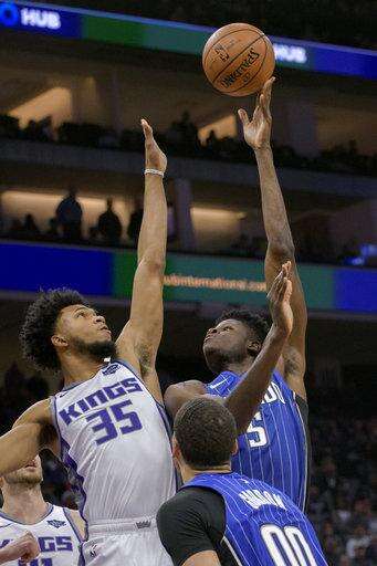 Sacramento Kings forward Marvin Bagley III, left, defends against Orlando Magic center Mo Bamba during the first quarter of an NBA basketball game in Sacramento, Calif., Monday, Jan. 7, 2019. (AP Photo/Randall Benton) The Associated Press