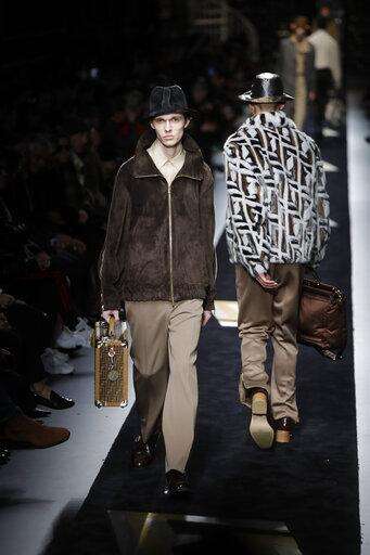 Models wear creations as part of the Fendi men's Fall-Winter 2019-20 collection, that was presented in Milan, Italy, Monday, Jan.14, 2019. (AP Photo/Luca Bruno)