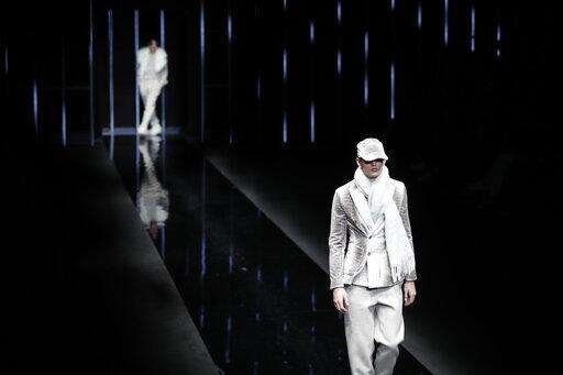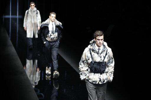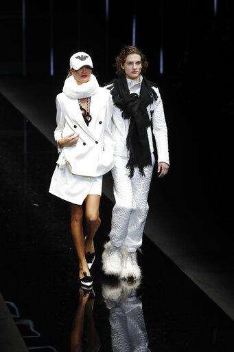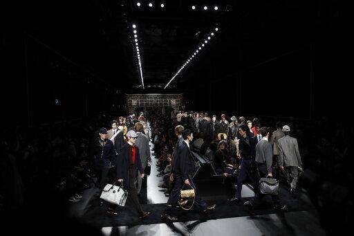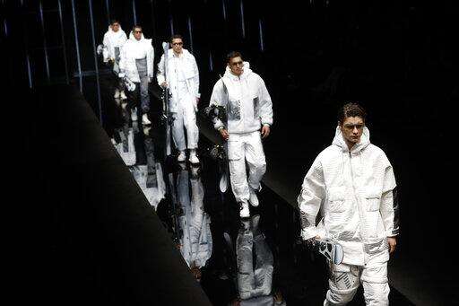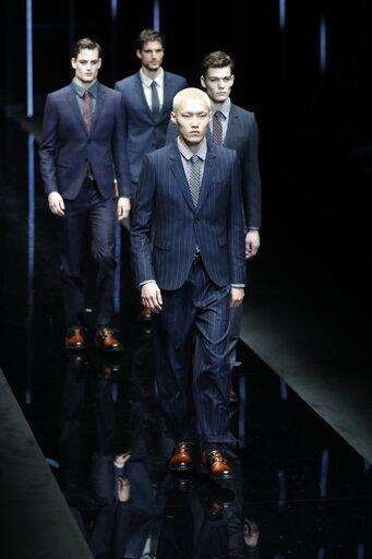 Models wear creations as part of the Emporio Armani men's Fall-Winter 2019-20 collection, that was presented in Milan, Italy, Monday, Jan.14, 2019. (AP Photo/Antonio Calanni)