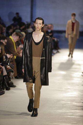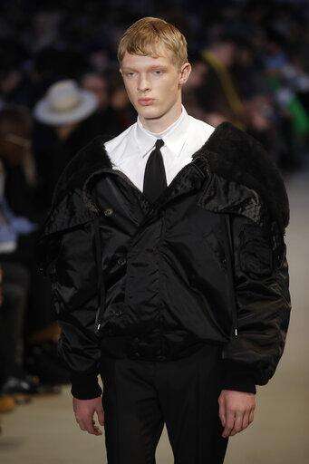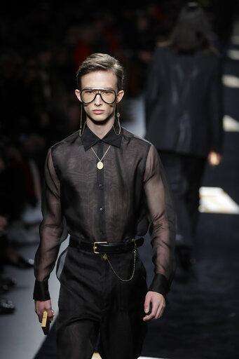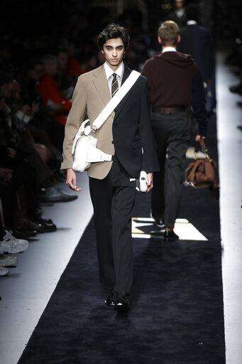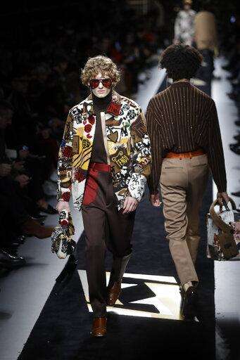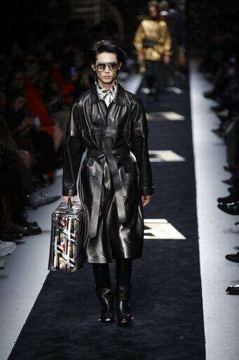 A model wears a creation as part of the Fendi men's Fall-Winter 2019-20 collection, that was presented in Milan, Italy, Monday, Jan.14, 2019. (AP Photo/Luca Bruno)
