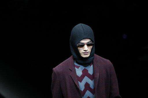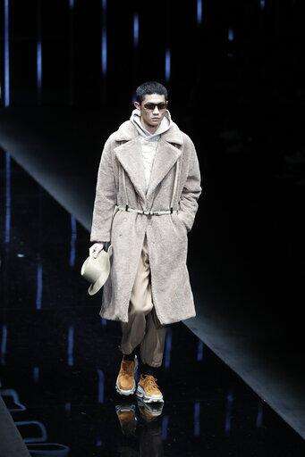 A model wears a creation as part of the Emporio Armani men's Fall-Winter 2019-20 collection, that was presented in Milan, Italy, Monday, Jan.14, 2019. (AP Photo/Antonio Calanni)