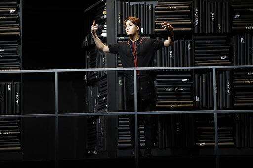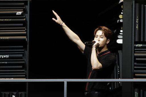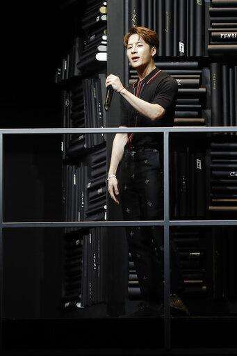 Singer Jackson Wang performs at the end of the Fendi men's Fall-Winter 2019-20 collection, that was presented in Milan, Italy, Monday, Jan.14, 2019. (AP Photo/Luca Bruno)