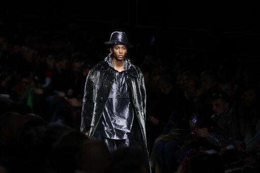 A model wears a creation part of the Isabel Benenato men's Fall-Winter 2019-20 collection, that was presented in Milan, Italy, Monday, Jan. 14, 2019. (AP Photo/Luca Bruno)