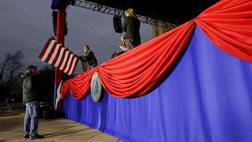 Workers prepare the grounds of the Texas State Capitol for Tuesday's Inauguration Ceremonies, in Austin, Texas, Monday, Jan. 14, 2019. (AP Photo/Eric Gay) The Associated Press