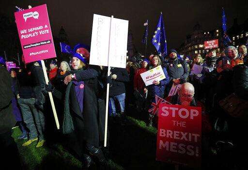 Rival groups of pro-Brexit and pro-EU demonstrators are rallying outside Britain's Parliament ahead of Tuesday's historic vote on a divorce deal with the European Union.