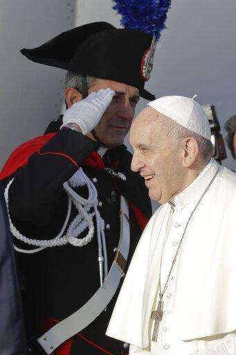 Pope Francis boards an airplane on his way to Panama, at Rome's Fiumicino international airport, Wednesday, Jan. 23, 2019. History's first Latin American pope is the son of Italian immigrants to Argentina and is expected to offer words of hope to young people gathered in Panama for World Youth Day. (AP Photo/Andrew Medichini) The Associated Press