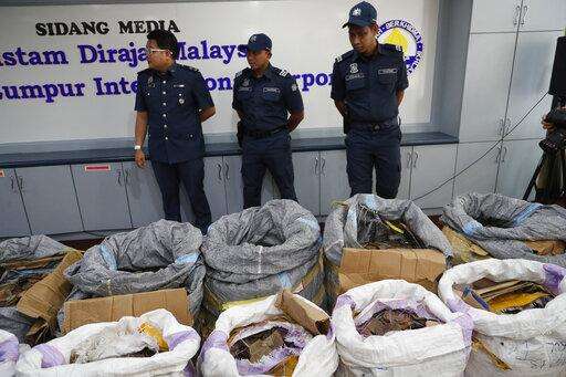 WASHINGTON (AP) - When Chinese police found them in the trunk of a smuggler's car, 33 of the trafficked pangolins - endangered scaly mammals from southern China - were still alive, wrapped in plastic bags soaked with their own urine.