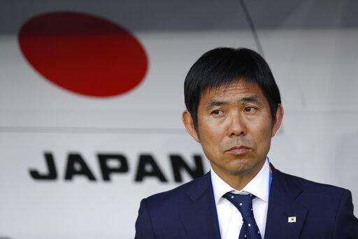 Japan's head coach Hajime Moriyasu ahead of the the AFC Asian Cup quarterfinal soccer match between Japan and Vietnam at Al Maktoum Stadium in Dubai, United Arab Emirates, Thursday, Jan. 24, 2019. (AP Photo/Hassan Ammar)