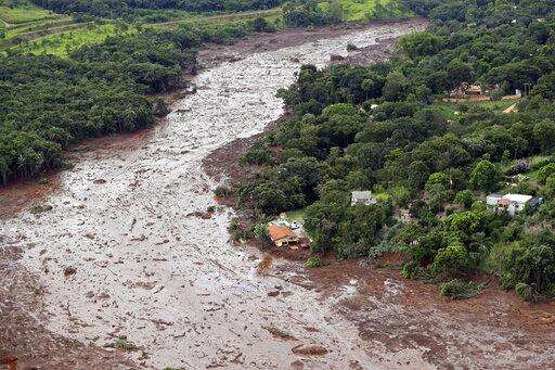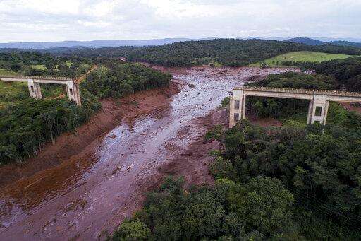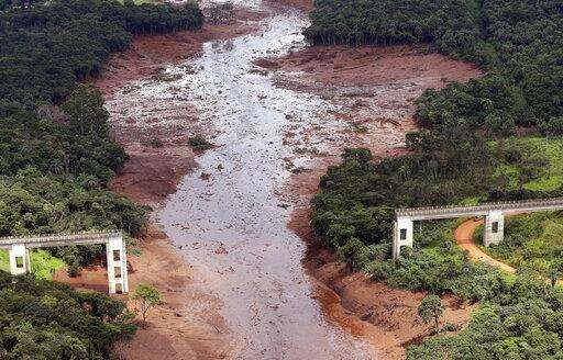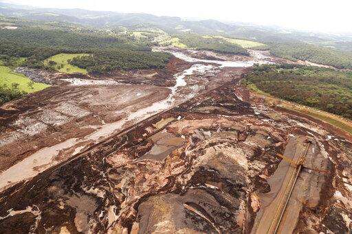 BRUMADINHO, Brazil (AP) - The death toll from the collapse of a dam holding back mine waste in southeastern Brazil rose to 40 on Saturday as searchers flying in helicopters and rescuers laboring in deep mud uncovered more bodies. An estimated 300 people were still missing and authorities expected the death toll to increase during a search made more challenging by intermittent rains.