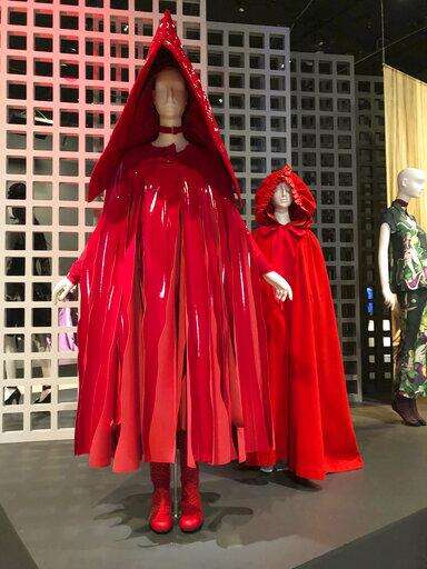 They include "Fairy Tale Fashion," a 2016 show that illustrated 15 well-known fairy tales using both clothes - like the iconic red riding hood - or accessories, like the glass slipper. A real red hooded cape from 18th-century England stands next to a more modern one by Rei Kawakubo of Comme des Garcons, featuring a shiny, quilted patent-leather hood.