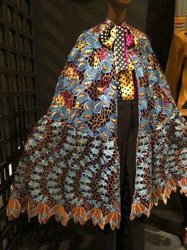 Also represented is "Black Fashion Designers," a very popular 2017 show that displayed work by more than 60 black designers of different generations. A wide, brilliantly colored cape by Duro Olowu, the Nigerian-born designer, is paired here with a red-and-black wrap-style gown by Scott Barrie.