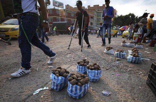 About a dozen human rights activists stood at the gated entrance to the Tienditas International Bridge on Colombia's side, demanding Maduro allow the emergency aid to cross into Venezuela. They waved flags while Colombian police trucks carrying armed officers and other authorities drove by throughout the day.