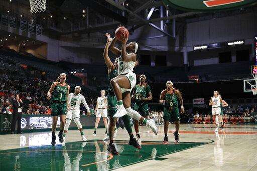 There were 14 lead changes before Taylor Mason's 3-pointer put the Hurricanes ahead to stay 43-41 midway through the third quarter. Notre Dame cut the margin to two points three times in the final period but could get no closer.