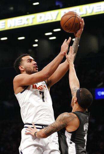 The Nets made 13 of their first 18 attempts from behind the arc against the Nuggets. Harris, who missed the last game with a sore right hip, hit three 3s, and Allen Crabbe came off the bench to hit his first 3-point attempt after missing 26 games with a sore right knee.