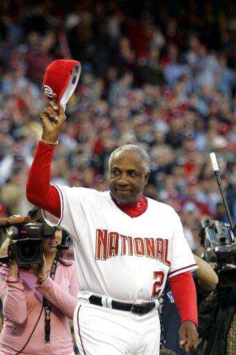 FILE - In this April 14, 2005, file photo, Washington Nationals manager Frank Robinson tips his hat to the crowd as he is introduced during their home opener against the Arizona Diamondbacks, at RFK Stadium in Washington. Hall of Famer Frank Robinson, the first black manager in Major League Baseball and the only player to win the MVP award in both leagues, has died. He was 83. Robinson had been in hospice care at his home in Bel Air. MLB confirmed his death Thursday, Feb. 7, 2019.(AP Photo/Evan Vucci, File) The Associated Press