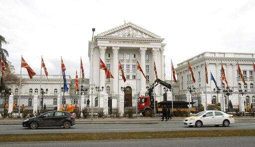 SKOPJE, Macedonia (AP) - Macedonian authorities began Monday removing official signs from government buildings to prepare for the country's new name: North Macedonia.
