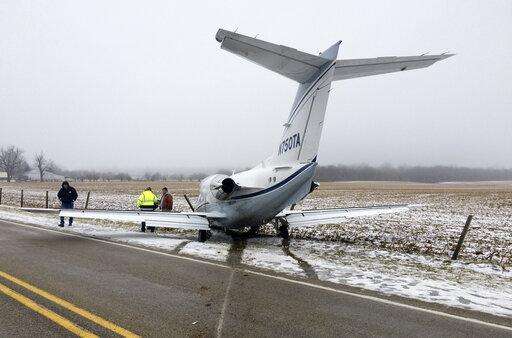No one was injured when a small plane slid on a snowy runway at Richmond Municipal Airport and crossed Indiana 227.