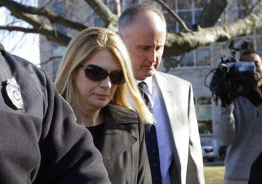 Michelle Carter's parents Gail and David Carter depart Taunton District Court, in Taunton, Mass., following a hearing Monday, Feb. 11, 2019 where defendant Michelle Carter's 15-month prison term was upheld. Carter, who sent her suicidal boyfriend a barrage of text messages urging him to kill himself was jailed Monday on an involuntary manslaughter conviction nearly five years after he died in a truck filled with toxic gas. (AP Photo/Steven Senne)