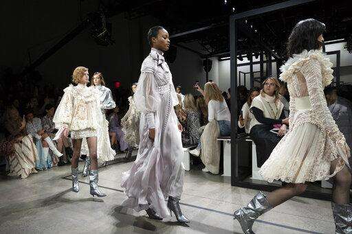 "The idea is we're mixing the femininity with the masculinity," Zimmermann told The Associated Press backstage after the show. "We wanted to really get in there with the outerwear and mix it with our very feminine dresses and see what happened."