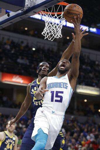Hornets: Walker has topped the 30-point mark in five consecutive games. He also had nine rebounds. ... Cody Zeller had 18 points and nine rebounds in his return to Indiana. ... Tony Parker sat out with a sprained back. ... The Hornets are 8-20 on the road this season. ... Charlotte lost the season series 2-1 and only has one series win since 2007-08. ... The Hornets were 25 of 33 on free throws, were 7 of 40 on 3s and shot a season-low 32.2 percent from the field.