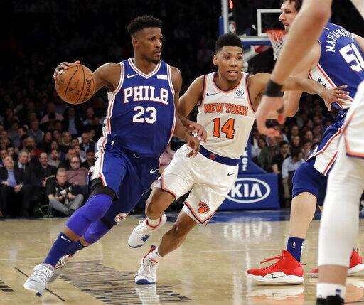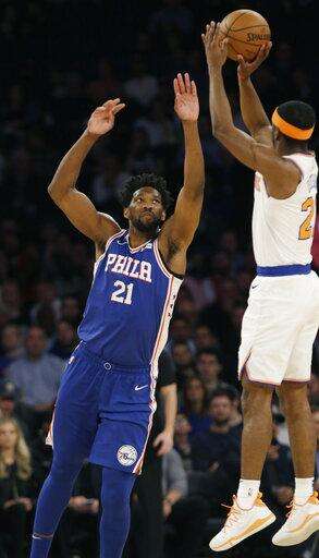 Philadelphia seemed headed for a rout when it scored eight straight points in the third to open an 88-62 advantage after a free throw by Simmons, but the Knicks put up 36 points in the period and were within single digits going to the fourth.