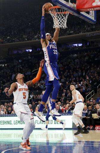 The Knicks had their moments, highlighted by rookie Kevin Knox's powerful slam over Simmons . But they don't have the firepower to beat a team like the 76ers, or anyone else in the league over the last 2 ˆ½ months.