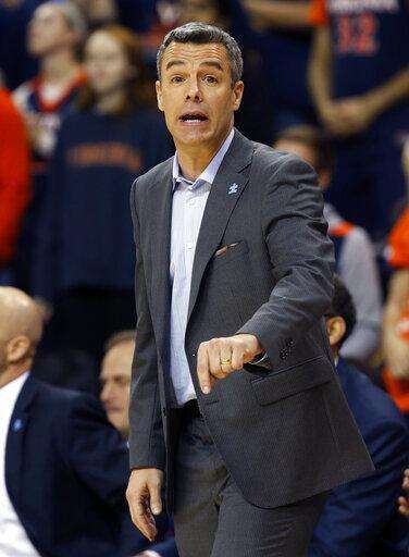 Virginia head coach Tony Bennett directs his team during the first half of an NCAA college basketball game against Notre Dame, in Charlottesville, Va., Saturday, Feb. 16, 2019. Virginia defeated Notre Dame 60-54. (AP Photo/Steve Helber) The Associated Press