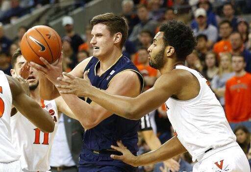 But Virginia then went scoreless for more than four minutes, and Notre Dame (13-12, 3-9) closed to within 54-50. The Irish called timeout with 41 seconds left, and when Virginia inbounded the ball to Guy, Nate Laszewski stole it and scored, making it 54-52 and prompting a timeout by the Cavaliers before inbounding the ball again.