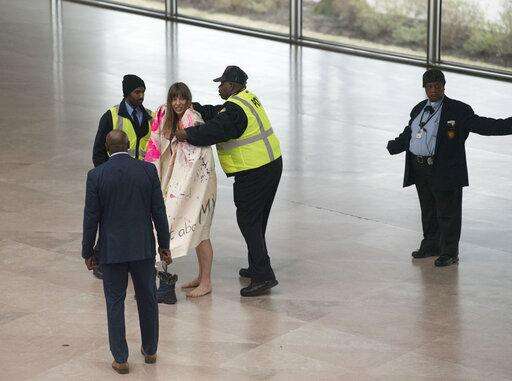 The Trump administration is not the only target for these sorts of protests. On Thursday, two female activists disrobed inside the National Gallery of Art to protest what they say is a lack of diversity in the artists being featured. One led security on a brief chase before being subdued. The National Gallery of Art did not respond to a request for comment.
