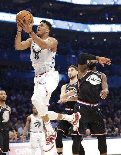 "It's easy as long as you stay humble and down to earth," Antetokounmpo said of handling his role as the All-Star Game team leader on Sunday night. "It's easy. I think just being a leader of the team, it wasn't as tough as I thought because my teammates, the guys in the locker room encouraged me to step up and take it serious and play hard and help the team to win. So that was kind of easy tonight."