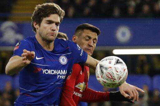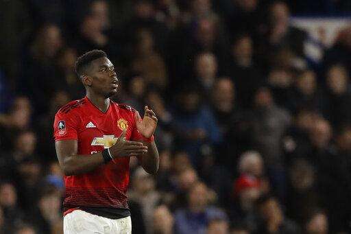 LONDON (AP) - Ander Herrera and Paul Pogba each scored first-half goals as Manchester United defeated Chelsea 2-0 on Monday at Stamford Bridge to advance to the quarterfinals of the FA Cup.