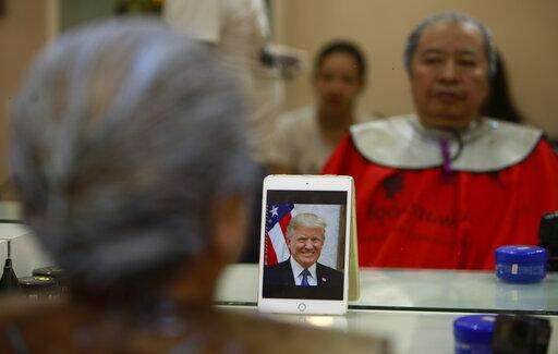Le Phuc Hai, 66, receives a Trump haircut in Hanoi, Vietnam, on Tuesday, Feb. 19, 2019. U.S. President Donald Trump and North Korean leader Kim Jong Un have become the latest style icons in Hanoi, a week before their second summit is to be held in the capital city of Vietnam. (AP Photo/Hau Dinh)