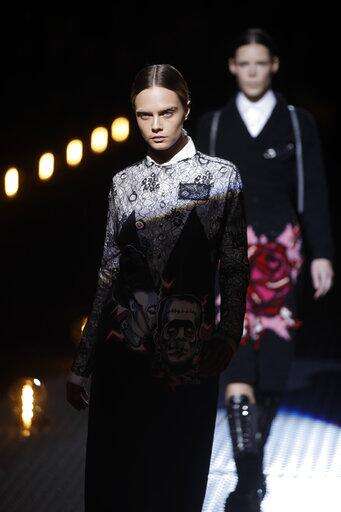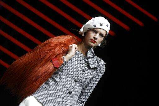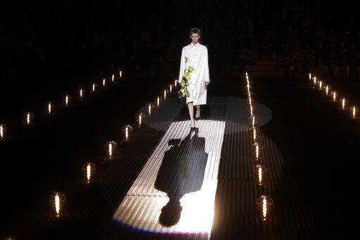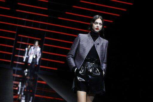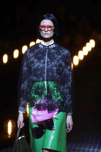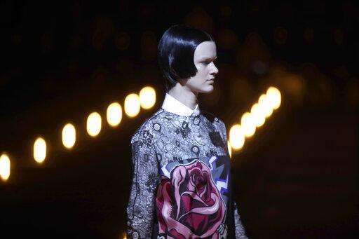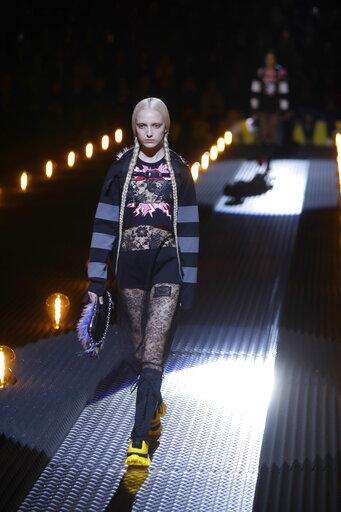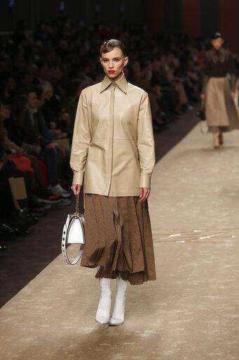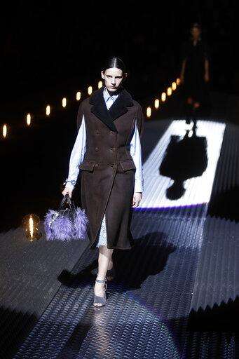 A model wears a creation as part of the Prada women's Fall-Winter 2019-2020 collection, that was presented in Milan, Italy, Thursday, Feb.21, 2019. (AP Photo/Luca Bruno)
