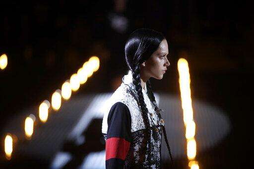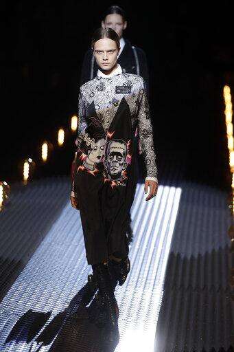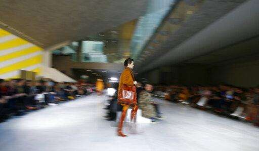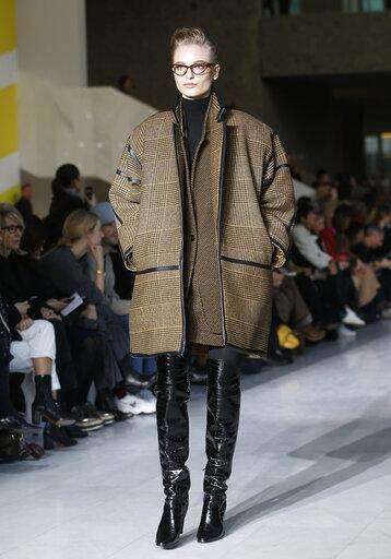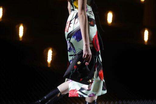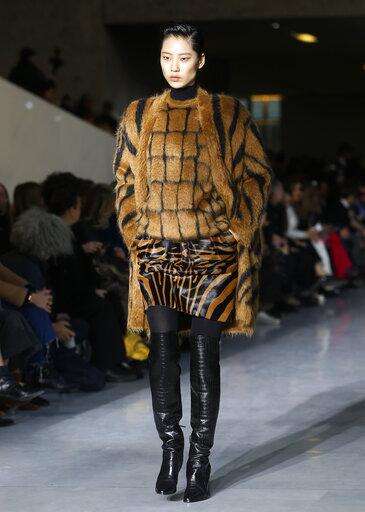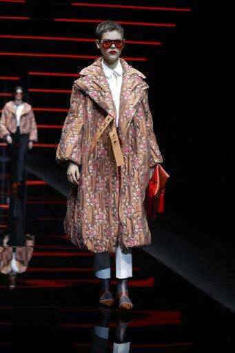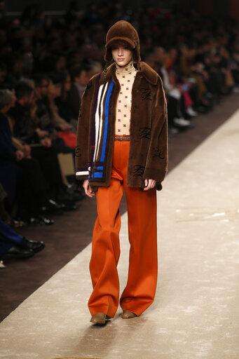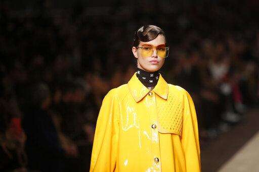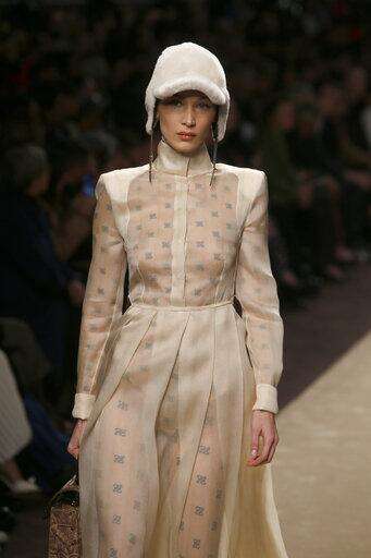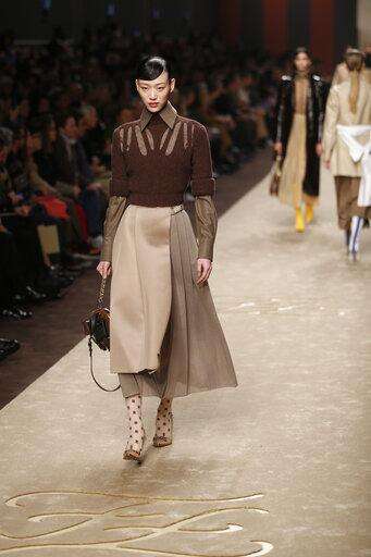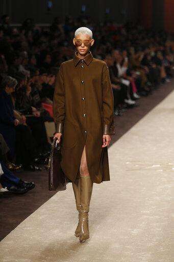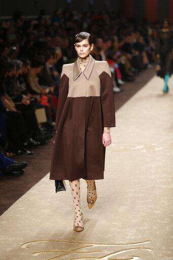 A model wears a creation as part of the Fendi women's Fall-Winter 2019-2020 collection, that was presented in Milan, Italy, Thursday, Feb.21, 2019. (AP Photo/Antonio Calanni)