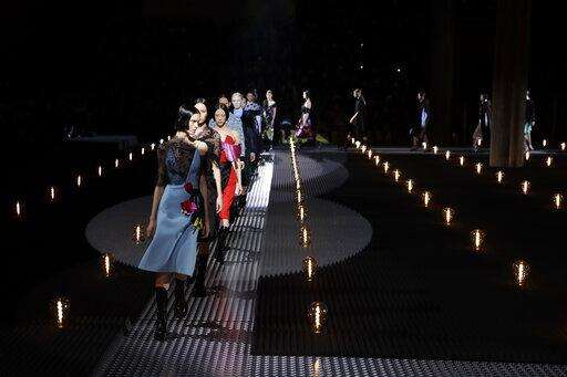 Models wear creations as part of the Prada women's Fall-Winter 2019-2020 collection, that was presented in Milan, Italy, Thursday, Feb.21, 2019. (AP Photo/Luca Bruno)