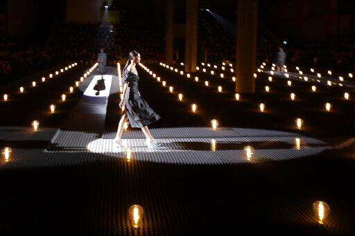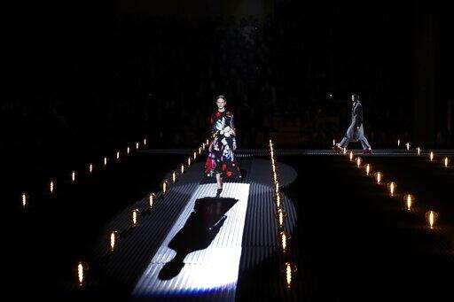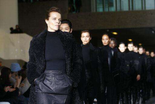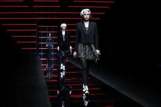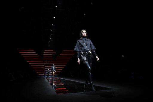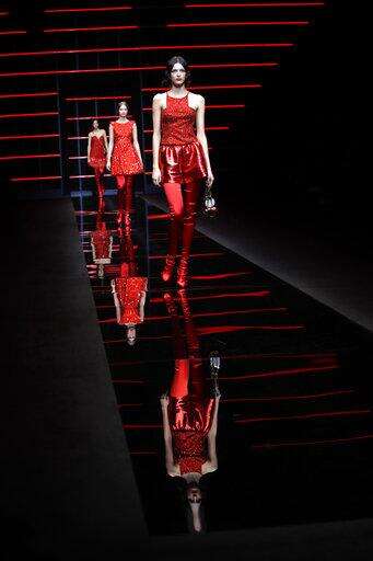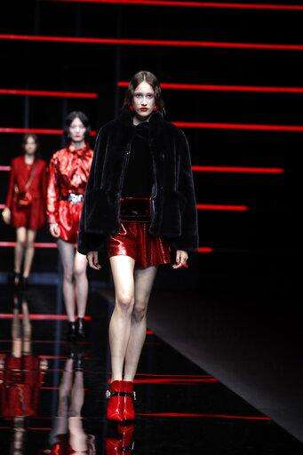 Models wear creations as part of the Emporio Armani women's Fall-Winter 2019-2020 collection, that was presented in Milan, Italy, Thursday, Feb.21, 2019. (AP Photo/Luca Bruno)